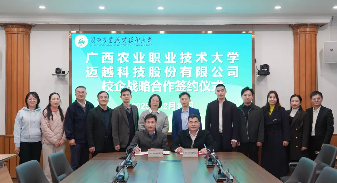 162025-12深化产教融合,,驱动AI+农业:迈超光电科技与广西农业职业技术大学签署战略合作框架协议12月16日,,,,迈超光电科技与广西农业职业技术大学正式签署校企战略合作框架协议,,,,标志着双方在人才培养、、、科研创新、、平台共建等领域的深度协同全面启动。。。。迈超光电科技董事长李常青,,,,校党委...