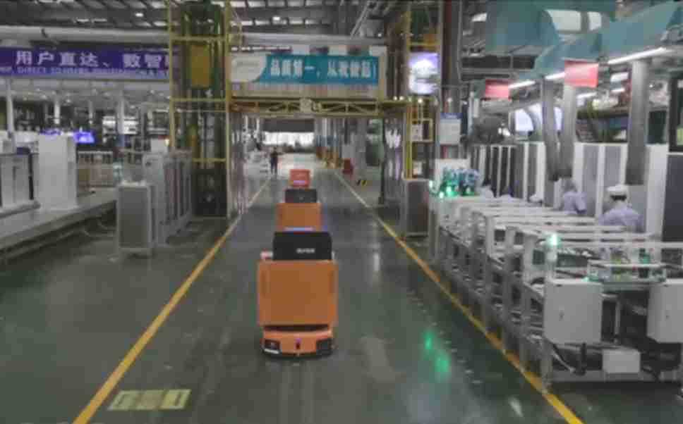 为车载冰箱物流配送打造的智能解决方案,,包含产中物流通过潜伏举升AMR搬运至线边,,产后成品物流智能仓储,,,流程包含产中物流智能齐套入库,,,线边安灯叫料AMR智能配送至线边,,,成品入库、、、出库,,,通过无人堆高车机器人,,,智能仓储管理替代人工作业管理,,实现更高存储、、更高效率、、更具柔性化的解决方案。。。。